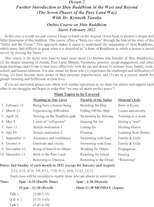 Starting in February, Dr. Kenneth Tanaka is offering an Online Course on Shin Buddhism. See attached flyer for registration information, course topics and dates.